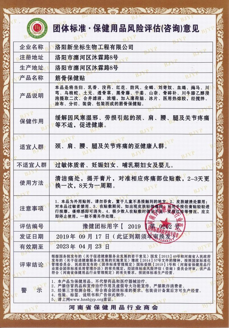 筋骨保健貼評估編號第0202號
